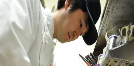 プロが調理 - 健康が気になるワンちゃんのために、肉を知りつくした調理人が愛情込めて調理をしています。工房では清潔、安全を心がけ、日々おいしさを追求しています。